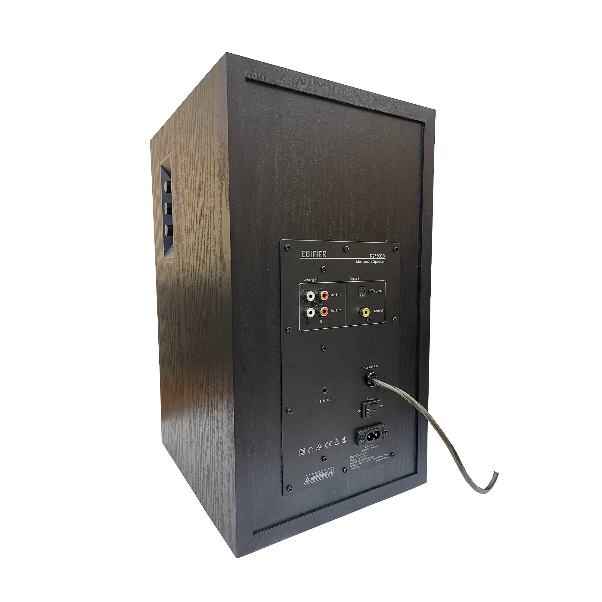 R2750DB имеет две пары аналоговых входов, оптический и коаксиальный интерфейсы, а также выход на сабвуфер. Все разъемы расположены на панели коммутации, на тыльной поверхности активной колонки.