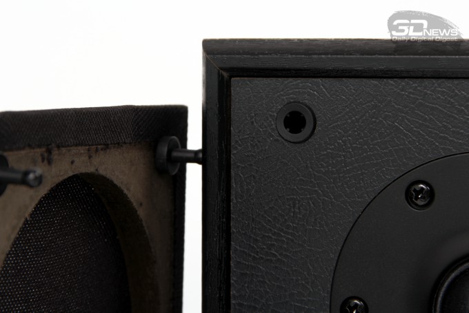 Колонки комплектуются съёмными декоративными фальшпанелями, ткань которых натянута на рамки из той же 12-мм MDF-плиты. Каждая крепится на колонке с помощью четырёх надёжно и плотно входящих в отверстия осей, благодаря чему полностью исключается возможность возникновения дребезга даже на полной громкости системы.