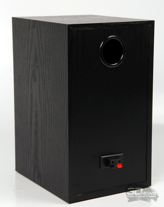 Обе колонки выполнены из 12-миллиметровой MDF-плиты (Medium Density Fiberboard, «древесно-волоконная плита средней плотности») класса E0, что на практике означает высокое качество и отсутствие вредных для здоровья примесей. Габариты и внешний вид обеих колонок совершенно идентичны – если, конечно, не заглядывать на тыльную сторону. Расположение динамиков в каждой симметрично относительно вертикальной оси.