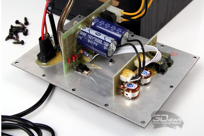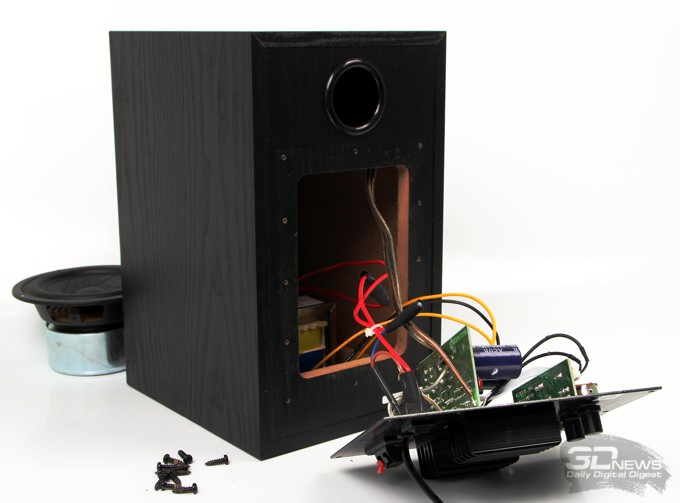 Отвинчиваем дюжину шурупов на тыльной стороне активной колонки и получаем доступ к электронной части системы.