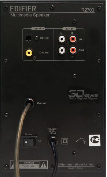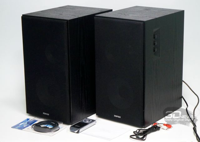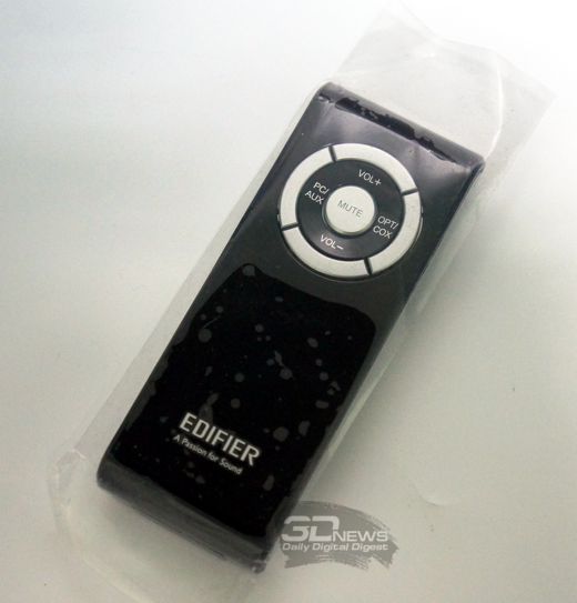 Комплектом, который поступил в нашу редакцию, уже пользовались, поэтому за соответствие магазинной комплектации ручаться не будем. Разумеется, в комплект входит пульт ДУ, возможно, и набор "тюльпанов", цифровой же интерфейс был уложен в коробку в отдельной розничной упаковке: хоть и под брендом Edifier, но поручиться за его наличие в розничном комплекте мы не готовы.