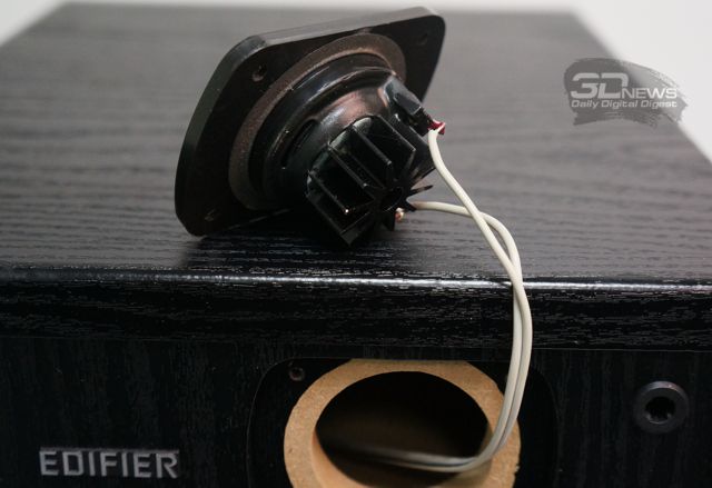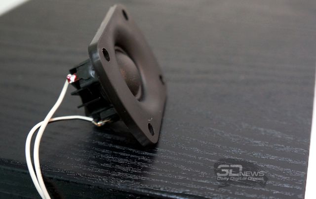 Механическое исполнение на высоком уровне, отверстия под динамики выполнены с минимальным технологическим зазором, надёжно держатся в соответствующих пазах, для изъятия даже с открученными саморезами понадобились дополнительные усилия, особенно пришлось помучиться с твиттером. Разве что типоразмер саморезов маловат — явно не для многоразовой разборки системы, этим лучше не злоупотреблять. Фазоинвертор прикрыт декоративной сеточкой — это, полагаю, приятная мелочь для тех, кто не любит использовать накладные фальшпанели.