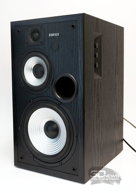 Переходим к активной колонке. К чести Edifier необходимо отметить, что инженеры не поленились и расположили динамики в колонках с зеркальной симметрией. Мелочь, да и на звук вряд ли влияет, но эстетически выглядит приятно.