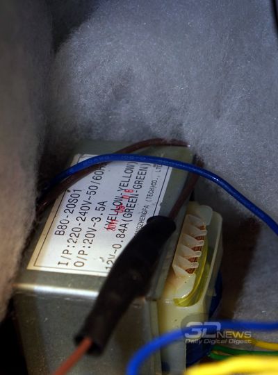 Первым делом — питание: вот так выглядит силовой трансформатор, обычный понижающий классический трансформатор, без затей, которые тут и не нужны. Далее цепи питания разделяются — предварительный усилитель и выходные каскады питаются от разных преобразователей.