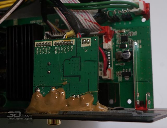 Непосредственно для усиления сигнала используются чипы TAS5342A производства Texas Instruments плюс контроллерная обвязка на чипах TAS5508C и 8L152C4 для разных частотных каналов.