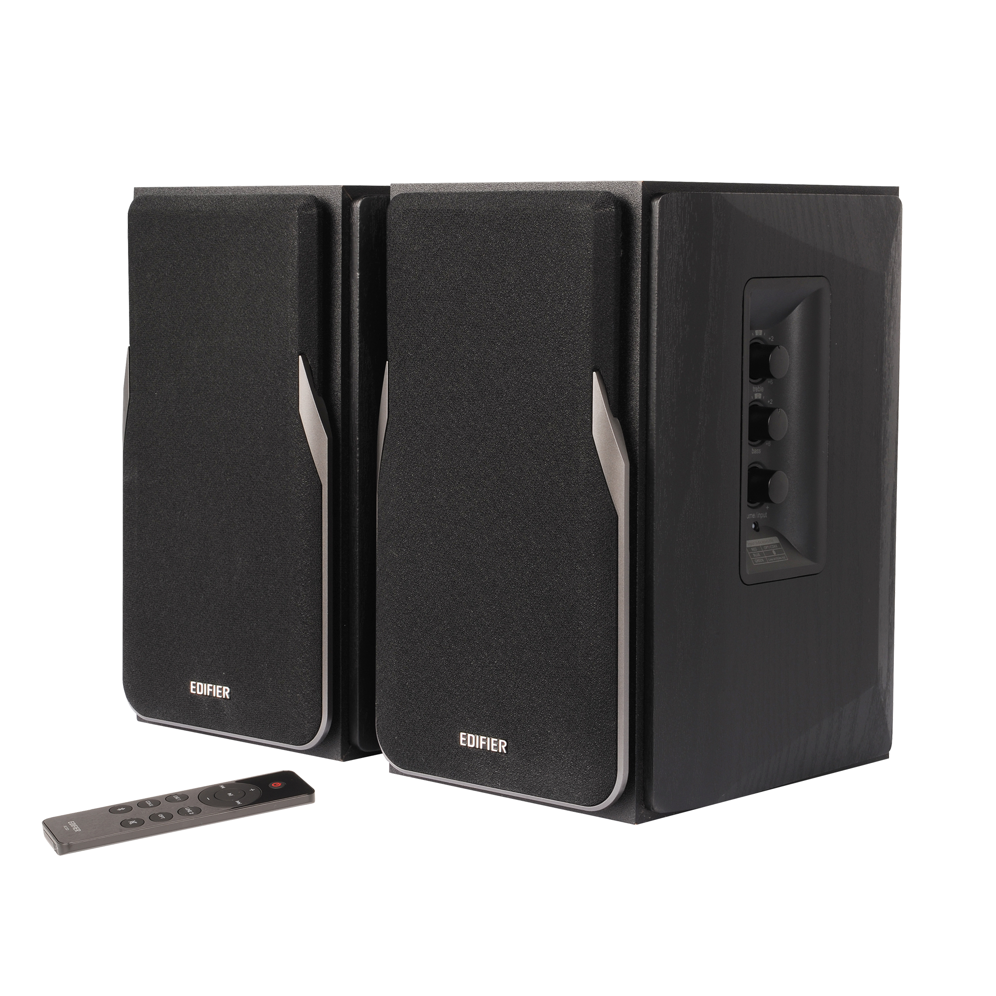 На боковой панели Edifier R1380DB легко регулировать громкость, контролировать уровень низких и высоких частот. Персонализируйте свои ощущения с помощью регуляторов, расположенных на активной колонке.