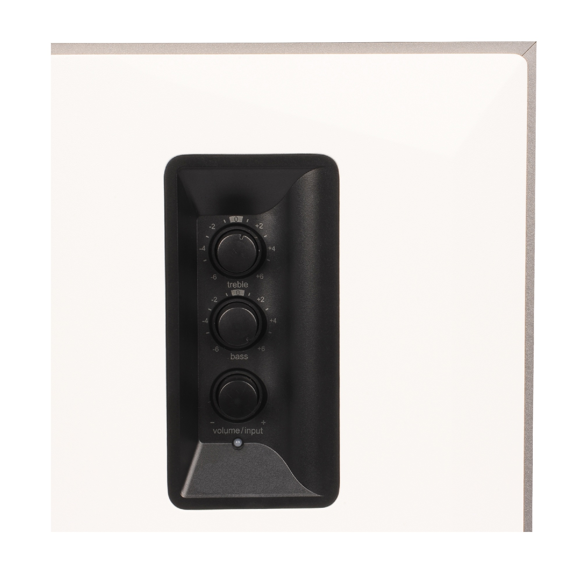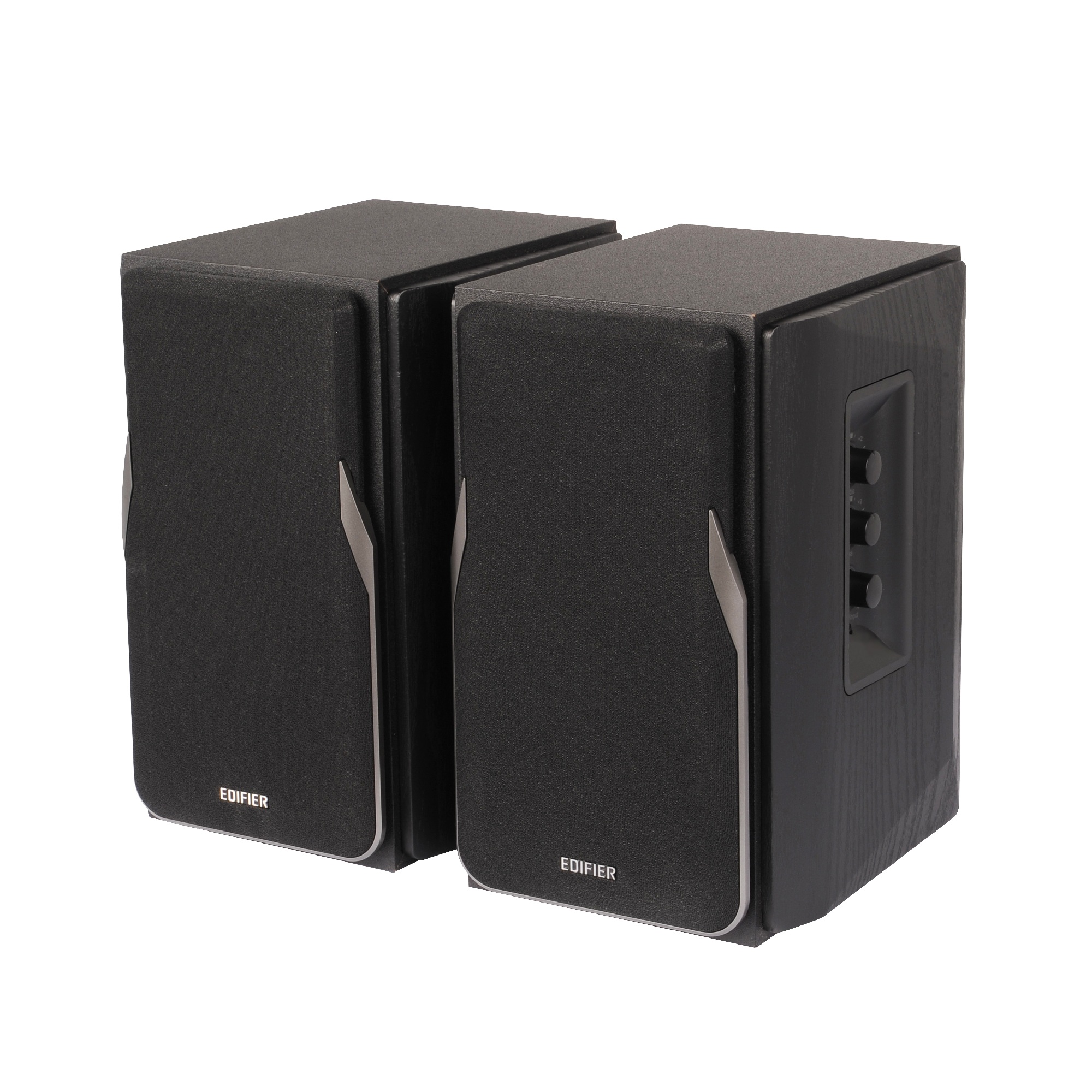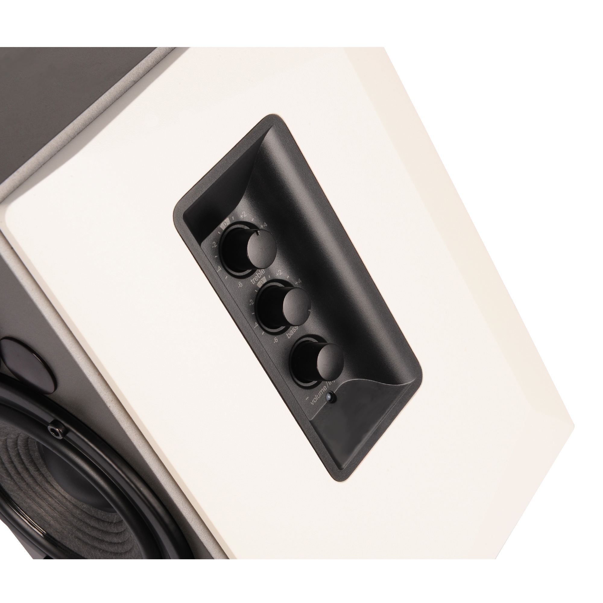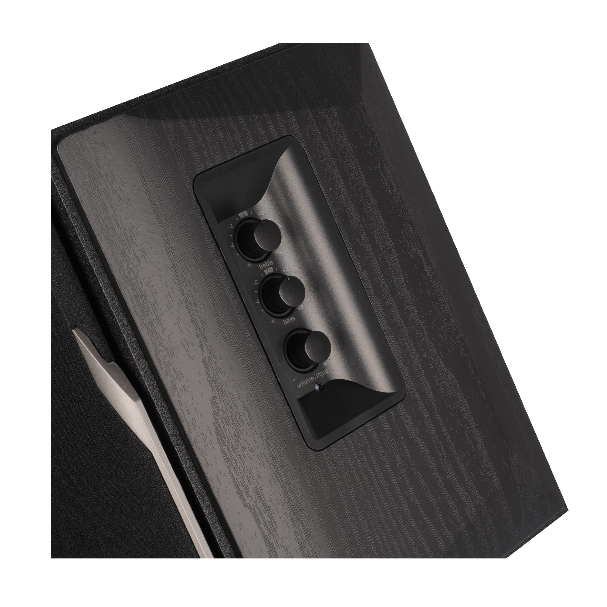 На боковой панели Edifier R1380T легко регулировать громкость, контролировать уровень низких и высоких частот. Персонализируйте свои ощущения с помощью регуляторов, расположенных на активной колонке.